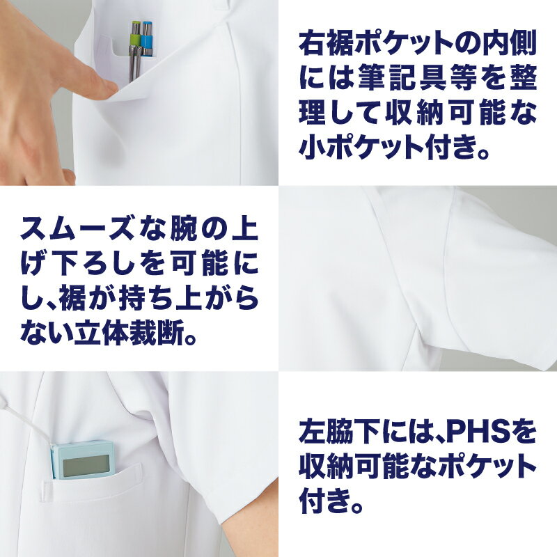 ■サイズ S〜EL ■素材 ウーブンストレッチ:ポリエステル100% ■素材機能 吸汗速乾・工業洗濯・ストレッチ・防透・帯電防止・制菌 ■カラー 全4色 (※画像をご参照ください) ■仕様 左脇下ポケット 両側裾ポケット(右裾ポケット:内側に小ポケット付) ■検索ワード 医療用 ナース 看護師 クリニック 病院 制服 おしゃれ 医療 介護 吸汗速乾 ストレッチ 工業洗濯 動きやすい 防透 透け防止 帯電防止 制電 制菌 女性用 スタイリッシュ 優しい 軽い パステルカラー ホワイト 白 ブルー 水色 グリーン 緑 ピンク 清潔感 清楚 メーカー希望小売価格はメーカーサイトに基づいて掲載しています▽▽▽ 刺繍・プリントの加工サービスはこちら ▽▽▽ 人気!ネーム刺繍 ロゴ刺繍簡単お見積りフォーム プリント加工簡単!お見積りフォーム